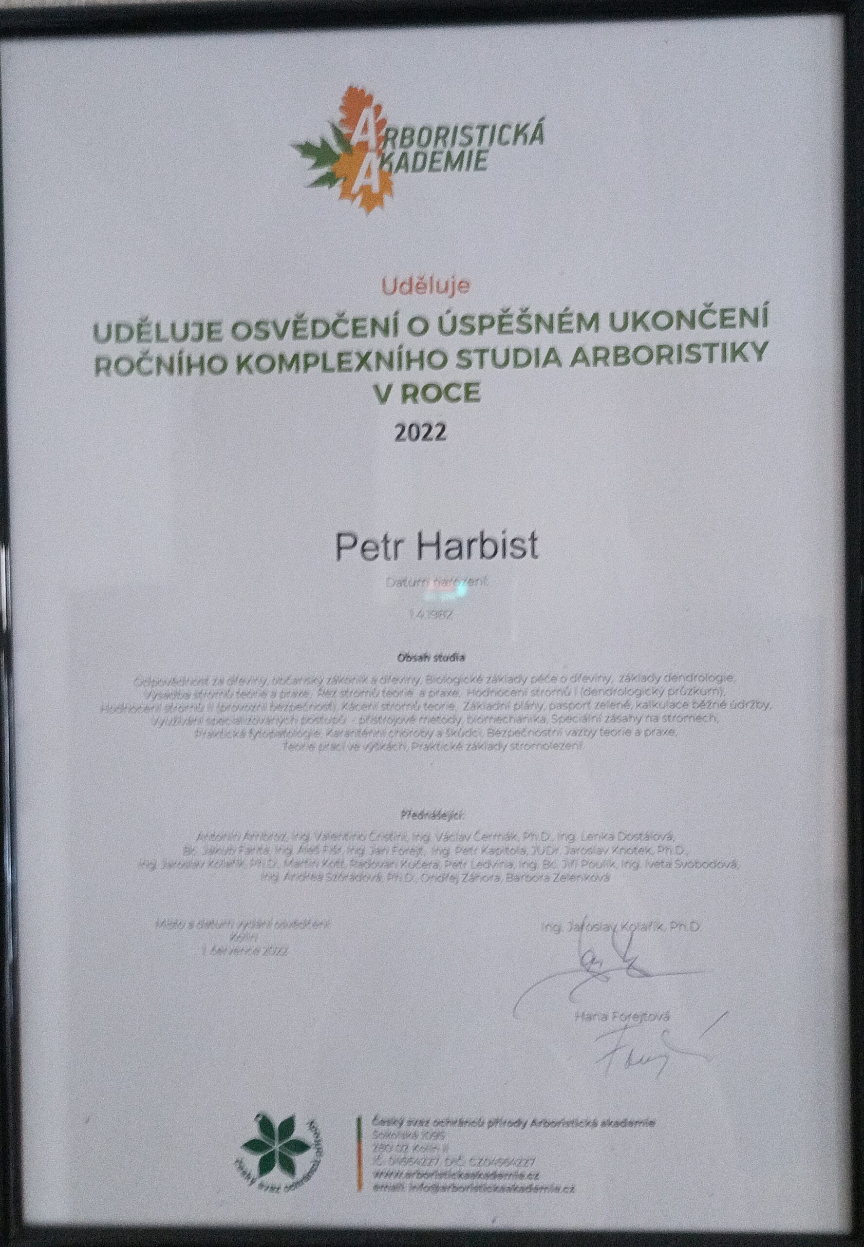 Asi jako jako ve všech oborech je třeba být neustále v aktuálním dění novinek a inovací. A jelikož je náš obor velmi mladý a v dnešní době je vývoj velmi rychlí, nesmím otálet. Jezdím na kurzy, semináře a sleduji každé pondělí náš Arbochat kde si v naší komunitě předáváme informace a novinky vše pod vedením našeho „guru“ Ing. Jaroslava Kolaříka, Ph.D.